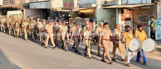 திருவள்ளூர்: 18வது நாடாளுமன்றத்திற்கான தேர்தல் தமிழ்நாட்டில் 19ஆம் தேதி ஒரே கட்டமாக நடைபெற உள்ளது. வாக்குப்பதிவு ஏற்பாடுகள் தீவிரமாக நடைபெற்று வருகின்றன. மக்கள் அச்சமின்றி வாக்களிக்க வேண்டும் என்பதற்காக துணை ராணுவத்தினர் ஆங்காங்கே பாதுகாப்பு பணியில் ஈடுபடுத்தப்படுகின்றனர். திருவள்ளூர் நாடாளுமன்ற தொகுதிக்குட்பட்ட மீஞ்சூரில் துணை ராணுவத்தினர் கொடி அணிவகுப்பு நடத்தினர். அரியன்வாயலில் தொடங்கி, முக்கிய சாலைகள், குடியிருப்பு பகுதிகள் மீஞ்சூர் பஜாரில் என துணை ராணுவத்தினர் மற்றும் காவல்துறையினர் கொடி அணிவகுப்பு நடத்தினர். மக்கள் யாருக்கும் பயப்படாமல் அச்சமின்றி தங்களுடைய ஜனநாயக கடமையையாற்றிட வேண்டும் என்பதை வலியறுத்தும் விதமாகவும், அசம்பாவித சம்பவங்களில் ஈடுபடுவோரை கைது செய்ய துப்பாக்கி ஏந்திய போலீசார் பணியில் உள்ளதை வெளிப்படுத்தும் விதமாகவும் இந்த கொடி அணிவகுப்பு நடத்தப்பட்டது. மேலும் ரவுடிச செயல்களில் ஈடுபட நினைப்பவர்களுக்கு எச்சரிக்கை கொடுக்கும் விதமாகவும் இந்த கொடி அணிவகுப்பு நடத்தப்பட்டது.