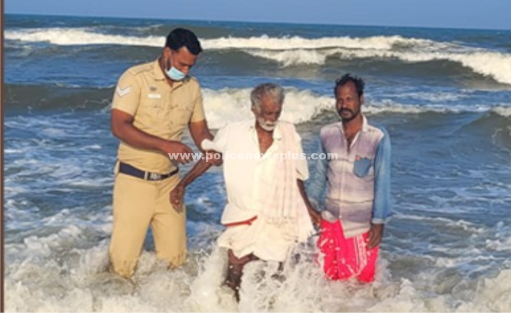 மயிலாடுதுறை: மயிலாடுதுறை மாவட்டம்¸ பூம்புகார் கடற்கரையில் 24.02.2022-ம் தேதி தனது மகன்கள் சரியாக கவனித்துக் கொள்ளாததால் தற்கொலைக்கு முயன்ற முதியவர் ஒருவரை அப்பொழுது அங்கு பணியிலிருந்த பூம்புகார் கடற்கரை காவல் நிலைய காவலர் திரு. எழில் வளவன் என்பவர் அருகில் இருந்த மீனவர் ராஜா கண்ணு என்பவரை அழைத்து அவரது உதவியுடன் காப்பாற்றி கரைக்கு கொண்டு வந்து சேர்த்தார். இதனை அறிந்த தமிழ்நாடு கடலோர பாதுகாப்பு குழும கூடுதல் காவல் துறை இயக்குநர் முனைவர். சந்திப் மித்தல் இ.கா.ப., அவர்கள் காவலரையும்¸ மீனவரையும் வெகுவாக பாராட்டினார்.