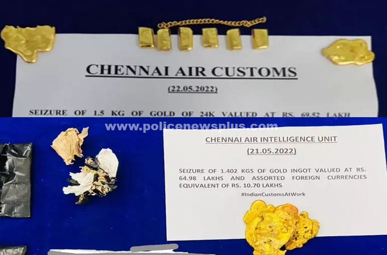 அதே போல் கொழும்பு, சார்ஜா ஆகிய நாடுகளில், இருந்து வந்த 6 பேரை சந்தேகத்தின் பேரில் நிறுத்தி விசாரித்தனர். அவர்கள் உள்ளாடை, உடமைகளில் தங்கத்தை மறைத்து, வைத்து கடத்தி வந்ததை கண்டு அதிர்ச்சி அடைந்தனர். அவர்கள் 6 பேரிடம் இருந்து ரூ. 69 லட்சத்தி 50 ஆயிரம் மதிப்புள்ள ஒன்றரை கிலோ, தங்கத்தை கைப்பற்றினார்கள். ஒரே நாளில் சுங்க இலாகா அதிகாரிகள் நடத்திய சோதனையில் ரூ. 1 கோடியே 24 லட்சத்தி 48 ஆயிரம் மதிப்புள்ள, 2 கிலோ 902 கிராம் தங்கத்தை பறிமுதல், செய்து கேரளா வாலிபர் உள்பட 7 பேரை கைது செய்தனர். இது தொடர்பாக வழக்குப்பதிவு செய்து7 பேரிடமும் தங்க கடத்தல், பின்னணியில் உள்ளவர்கள் யார் என விசாரணை, நடத்தி வருகின்றனர்.