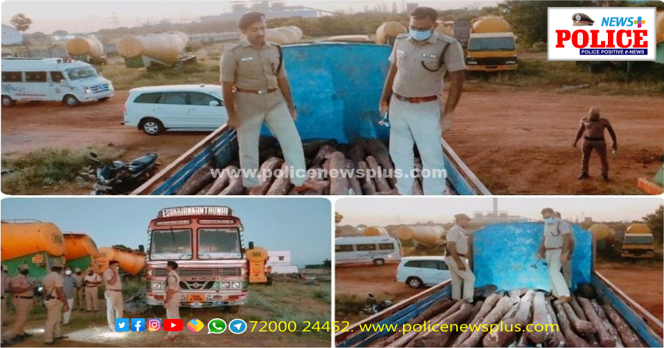 அவரது உத்தரவின்பேரில் தூத்துக்குடி ஊரக உட்கோட்ட உதவி காவல் கண்காணிப்பாளர் திரு.சந்தீஸ் அவர்கள் தலைமையில் தனிப்பரிவு உதவி ஆய்வாளர் திரு.நம்பிராஜன், புதியம்புத்தூர் தனிப்பிரிவு தலைமை காவலர் திரு.அருள் முருகன் மற்றும் சிப்காட் தனிப்பிரிவு முதல் நிலை காவலர் திரு.கலைவானர் உள்ளிட்ட போலீசார் புதியம்புத்தூர் காவல் நிலைய எல்லைக்குட்பட்ட பகுதியில் உள்ள வாகனம் நிறுத்துமிடத்திலிருந்த யார்டில் நின்று கொண்டிருந்த TN 51 K 7099 டாரஸ் லாரியை சோதனை செய்ததில், அதில் சுமார் 20 டன் எடையுள்ள ரூபாய் 10 கோடி மதிப்புடைய செம்மரக்கட்டைகளை சட்டவிரோதமாக பதுக்கி வைக்கப்பட்டிருந்தது தெரியவந்தது.