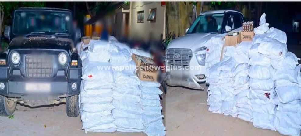 கிருஷ்ணகிரி : கிருஷ்ணகிரி மாவட்டம் ராயக்கோட்டை காவல் நிலைய பகுதியில் ராயக்கோட்டை TO தருமபுரி தேசிய நெடுஞ்சாலை காடுசெட்டிபட்டி அருகிலுள்ள கிரிஜா பால் கம்பெனி முன்பு மற்றும் ராயக்கோட்டை TO பஞ்சபள்ளி ரோடு உடையண்டஹள்ளி ரயில்வே கேட் அருகே ஆகிய இரு வெவ்வேறு இடங்களில் போலீசார் வாகன சோதனை செய்த போது அவ்வழியாக வந்த இரண்டு வாகனங்களைநிறுத்திய போது வாகனத்தின் இரண்டு ஓட்டுநர்கள் வாகனத்தை நிறுத்திவிட்டு தப்பி ஓடிவிட்டார்கள். இரண்டு வாகனங்களிலும் சோதனை செய்ததில் தமிழக அரசால் தடைசெய்யப்பட்ட 7,87,600/- ரூபாய் மதிப்பிலான புகையிலை பொருட்கள், 12,480/- ரூபாய் மதிப்பிலான மதுபானம் இருந்தது. வெளி மாநிலத்திலிருந்து புகையிலை பொருட்களை, மதுபானம் கடத்தி வந்த இரண்டு வாகனங்களையும் பறிமுதல் செய்து நிலையம் கொண்டு வந்து வழக்கு பதிவு செய்யப்பட்டது.