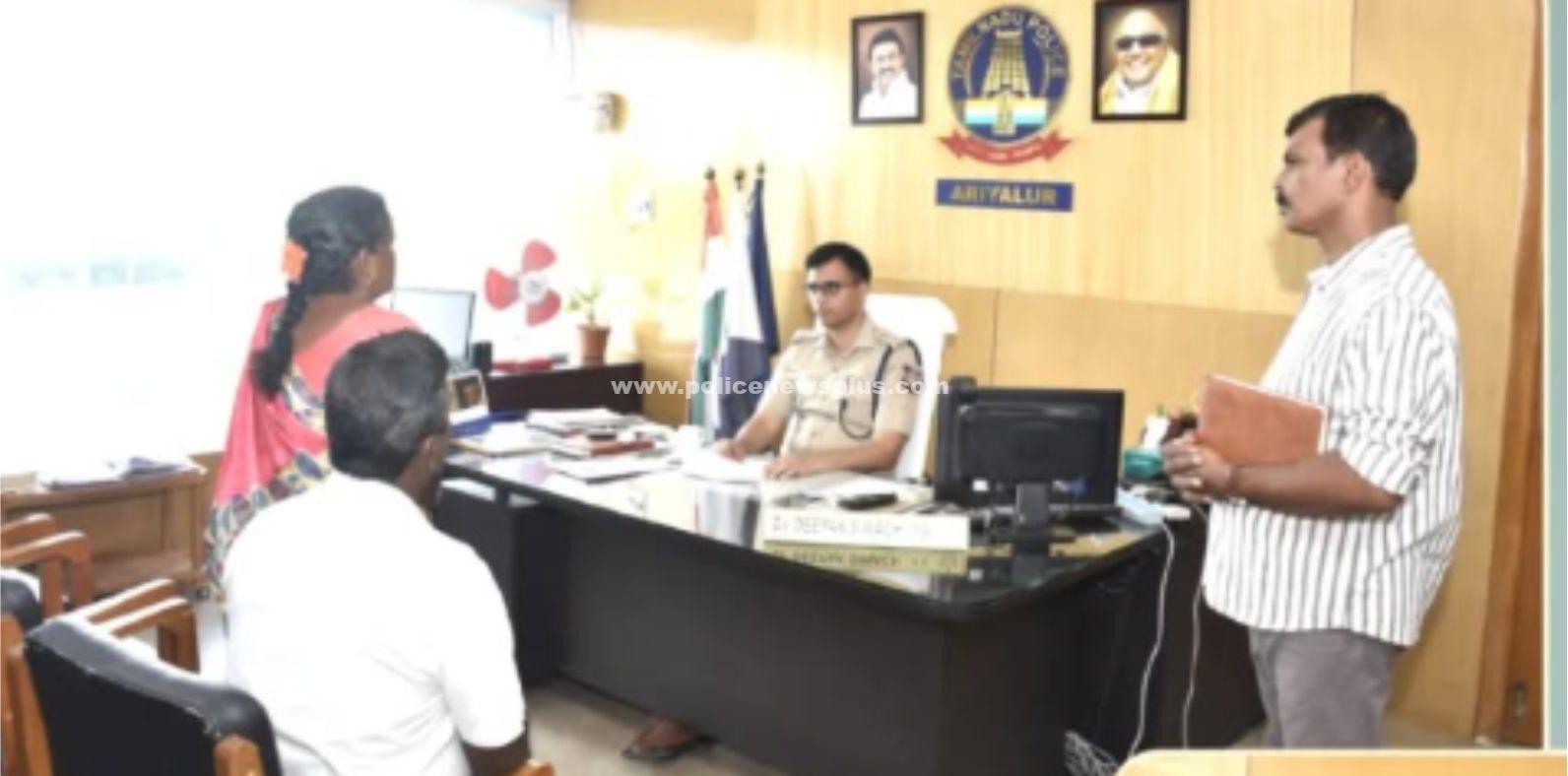 அரியலூர்: அரியலூர் மாவட்டத்தில் பொதுமக்கள் குறைதீர்க்கும் மனு கூட்டம் வாரந்தோறும் ஒவ்வொரு புதன்கிழமைகளிலும் நடைபெறுவதை முன்னிட்டு (19.03.2025) அரியலூர் மாவட்ட காவல் கண்காணிப்பாளர் டாக்டர்.தீபக் சிவாச் I.P.S., அவர்கள் தலைமையில் குறைதீர்க்கும் மனு கூட்டம் நடைபெற்றது. அதன்படி புதன்கிழமையான அரியலூர் மாவட்ட காவல் அலுவலகத்தில் மனு கொடுக்க வந்த 21 மனுதாரர்கள் தங்கள் குறைகளை மாவட்ட காவல் கண்காணிப்பாளர் டாக்டர்.தீபக் சிவாச் I.P.S., அவர்களிடம் நேரடியாக தெரிவித்து புகார் மனு அளித்தனர். பொதுமக்களின் குறைகளை கேட்டறிந்த காவல் கண்காணிப்பாளர் அவர்கள், உடனடியாக உரிய மேல் நடவடிக்கை எடுக்குமாறு காவல்துறை அதிகாரிகளுக்கு உத்தரவிட்டார்கள்.