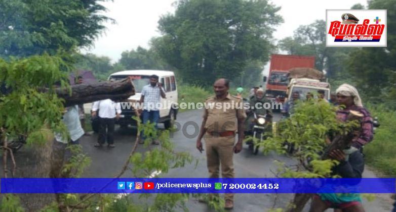 மேற்படி போக்குவரத்துக்கு இடையூறாக இருந்த அம்மரத்தை அகற்ற தோகமலை காவல் ஆய்வாளர் தலைமையில் காவலர்களுடன் விரைந்து சென்று மரத்தை அகற்றி போக்குவரத்தை சரி செய்து வந்தனர்.