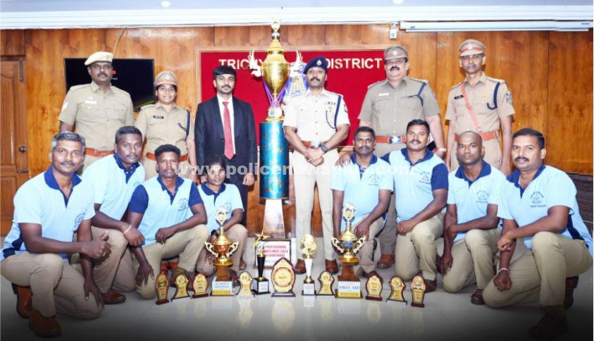திருச்சி: தமிழ்நாடு ஊர்க்காவல்படை சார்பில் நடத்தப்பட்ட 29-வது தொழிற்திறன் போட்டிகள் மற்றும் விளையாட்டுப் போட்டிகளில் திருச்சி மாவட்ட ஊர்க்காவல்படை சார்பில் கலந்து கொண்ட ஊர்க்காவல்படையினர் முதலுதவி, துப்பாக்கி சுடுதல், கபாடி போட்டி மற்றும் ஓட்ட பந்தயம் ஆகிய போட்டிகளில் கோப்பைகள் வென்றனர். தொழிற்திறன் மற்றும் விளையாட்டுப் போட்டிகளில் கோப்பைகள் வென்ற ஊர்க்காவல்படையினரை திருச்சி மாவட்ட காவல் கண்காணிப்பாளர் திரு.செ.செல்வநாகரத்தினம், இ.கா.ப., அவர்கள் பாராட்டினார்.