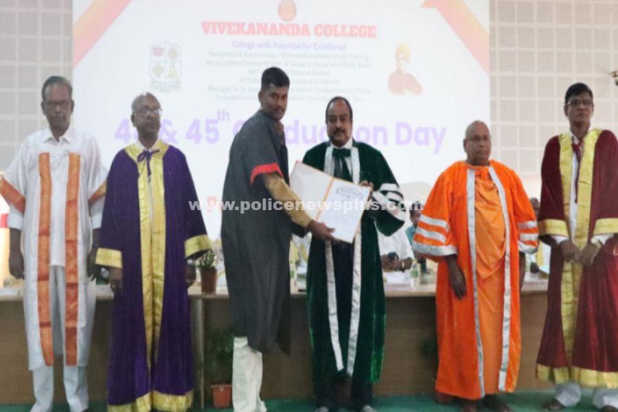 சிறப்பு விருந்தினர் மதுரை காமராசர் பல்கலைக்கழகத்தின் துணைவேந்தர் முனைவர் குமார் பட்டமளிப்பு விழா உரை ஆற்றினார். முறையாக துறைத்தலைவர்கள் அந்தந்த துறையின் பட்டதாரிகளின் பெயர்களை வாசிக்க 453 பட்டதாரிகள் சிறப்பு விருந்தினரிடமிருந்து பட்டங்களை பெற்றுக் கொண்டனர். அடுத்த நிகழ்வாக, முதல்வர் வெங்கடேசன் பட்டமளிப்பு விழாவின் உறுதி மொழியினை பட்டதாரிகளுக்கு வாசிக்க , பட்டதாரிகள் உறுதி மொழியினை ஏற்றுக் கொண்டனர். விவேகானந்த கல்லூரியின் குலபதி ஸ்ரீமத் சுவாமி அத்யாத்மானந்த, துணை முதல்வர் கார்த்திகேயன், முதன்மையர் சஞ்சீவி மற்றும் அகத்தர மைய ஒருங்கிணைப்பாளர் முனைவர் சதீஷ்பாபு ஆகியோர் விழாவை சிறப்பித்தனர். பெற்றோர்கள், தாய்மார்கள், முன்னாள் மற்றும் இந்நாள் ஆசிரியர்கள், ஆசிரியரல்லாத பணியாளர்கள், முன்னாள் மாணவர்கள் இந்நிகழ்ச்சியில் திரளாகப் பங்கேற்றார்கள்.