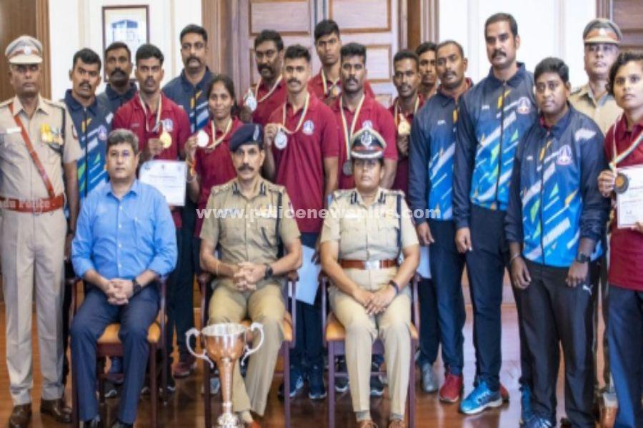 சென்னை : மகாராஷ்டிரா மாநிலத்தில் நடைபெற்ற 71- வது அனைத்து இந்திய WRESTLING CLUSTER-2022 காவல்துறை போட்டிகளில் கலந்துகொண்டு 3-தங்கம், 8-வெள்ளி மற்றும் 9-வெண்கலம் மொத்தம் 20 பதக்கங்களை பெற்று தமிழ்நாடு காவல்துறைக்கு பெருமை சேர்த்த வீரர்கள் மற்றும் வீராங்கனைகளை தமிழ்நாடு காவல்துறை தலைமை இயக்குநர் / படைத்தலைவர் முனைவர் திரு.செ.சைலேந்திரபாபு, இ.கா.ப., அவர்கள் நேரில் அழைத்து பாராட்டினார்கள். இந்நிகழ்ச்சியில் கூடுதல் காவல் துறை இயக்குனர் திரு. சஞ்சய் குமார், இ.கா.ப., மற்றும் காவல்துறை தலைவர் திருமதி. ராதிகா, இ.கா.ப., அவர்கள் உடனிருந்து பாராட்டினார்கள்.