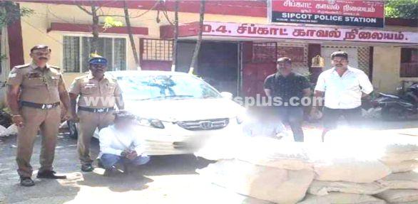 கிருஷ்ணகிரி : கிருஷ்ணகிரி மாவட்டம், ஓசூர் சிப்காட் காவல் நிலைய எல்லைக்குட்பட்ட ஜூஜூவாடி சோதனை சாவடி அருகே சிப்காட் போலீசார் வாகன சோதனையில் இருந்தபோது அவ்வழியாக வந்த வாகனத்தை நிறுத்தி சோதனை செய்தபோது தமிழக அரசால் தடைசெய்யப்பட்ட ₹1,20,336/- ரூபாய் மதிப்பிலான குட்கா பொருட்கள் மற்றும் ₹1,600/-ரூபாய் வெளிமாநில மதுபான பாக்கெட்கள் இருந்தது.வெளிமாநிலத்தில் இருந்து குட்கா பொருட்கள் மற்றும் மதுபானங்களை கடத்தி வந்த இரண்டு நபர்களை கைது செய்து அவர்களிடமிருந்து குட்கா பொருட்கள், மதுபானங்கள் மற்றும் வாகனம் பறிமுதல் செய்து நிலையம் கொண்டு வந்து வழக்கு பதிந்து குற்றவாளிகளை நீதிமன்ற காவலுக்கு உட்படுத்தி சிறையில் அடைத்தனர்.