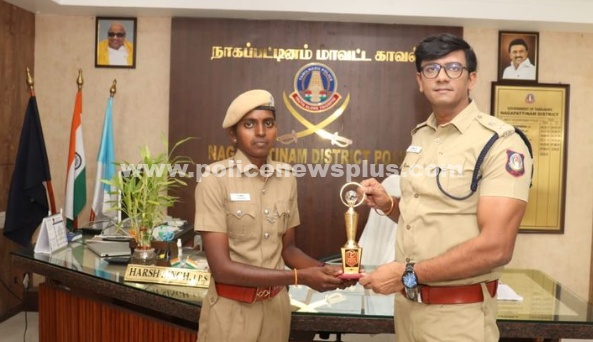 வெள்ளி பதக்கம் வென்ற பெண் காவலருக்கு பாராட்டு
