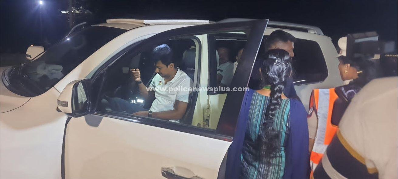 திண்டுக்கல்: திண்டுக்கல்லில் நடைபெறவுள்ள இளைஞர் அணி நிர்வாகிகள் அறிமுக கூட்டத்தில் கலந்து கொள்ள கரூரிலிருந்து காரில் வந்த துணை முதல்வர் உதயநிதி ஸ்டாலின் பயணித்த வாகனத்திற்கு வேடசந்தூர் அருகே சோதனை நடத்தப்பட்டது. கல்வார்பட்டி சோதனைச் சாவடியில் தேர்தல் நிலையான கண்காணிப்பு குழுவினர் வழக்கமான வாகன சோதனையின் ஒரு பகுதியாக இந்த சோதனையை மேற்கொண்டனர். இந்த நடவடிக்கையின் போது வேடசந்தூர் டிஎஸ்பி பவித்ரா, சார்பு ஆய்வாளர் பாலசுப்பிரமணியன் உள்ளிட்ட போலீசார் உடன் இருந்தனர்.