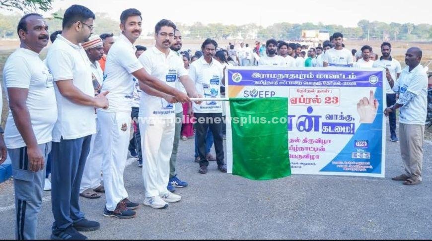 இராமநாதபுரம்: தமிழ்நாடு சட்டமன்ற பொது தேர்தல் 2026-ஐ முன்னிட்டு, இராமநாதபுரம் மாவட்டத்தில் 100% வாக்களிப்பின் அவசியம் குறித்து பொதுமக்களிடையே விழிப்புணர்வு ஏற்படுத்தும் வகையில், இராமநாதபுரம் மாவட்ட விருந்தினர் மாளிகை முதல் அம்மா பூங்கா வரை பொதுமக்கள் பங்கேற்ற நடைபயண பேரணியை மாவட்ட ஆட்சியர் திரு.சிம்ரன்ஜீத் சிங் காலோண்,IPS., அவர்கள் மற்றும் இராமநாதபுரம் மாவட்ட காவல் கண்காணிப்பாளர் திரு.G.சந்தீஷ்,IPS., அவர்கள் கொடியசைத்து தொடங்கி வைத்தார்கள்.