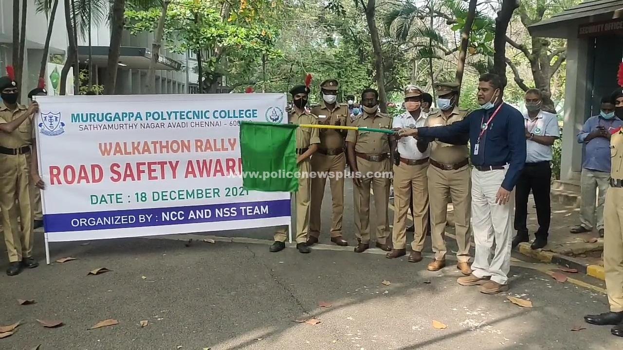 ஆவடி முருகப்பா தொழில்நுட்ப கல்லூரி மற்றும் ஆவடி போக்குவரத்து போலீசார் இணைந்து விழிப்புணர்வு பேரணி நடத்தினர்.இந்த பேரணியை முருகப்பா தொழில்நுட்ப கல்லூரி முதல்வர் சுதாகர்,மற்றும் போக்குவரத்து காவல் ஆய்வாளர் கோதண்டன், சட்டம் ஒழுங்கு ஆய்வாளர் ஆனந்த் ஆகியோர் கொடியசைத்து துவக்கி வைத்தார்.இந்த பேரணியானது கல்லூரி வளாகத்தில் இருந்து துவங்கி ஆவடி பேருந்து நிறுத்தம்,மார்க்கெட் என முக்கிய சாலை வழியாக சுமார் 5 கிலோமீட்டர் தூரம் கைகளில் விழிப்புணர்வு வாசகங்கள் அடங்கிய பதாகைகளை ஏந்தி ஊர்வலமாக சென்று விழிப்புணர்வு ஏற்படுத்தினார்.பின்னர் பேரணியானது இறுதியாக கல்லூரி வளாகத்தில் வந்து நிறைவடைந்தது.