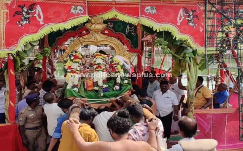 விழாவை முன்னிட்டு காலை 7.30 மணியளவில் உற்சவர் சன்னதியில் சுப்பிரமணியசுவாமி, தெய்வானை அம்மனுக்கு பால், பன்னீர். சந்தனம் உள்ளிட்ட 16 வகை பொருள்கள் கொண்டு சிறப்பு அபிஷேகம் மற்றும் ஆராதனைகள் நடைபெற்றது. தொடர்ந்து சிறப்பு அலங்காரத்தில் சுப்பிரமணிய சுவாமி தெய்வானையுடன் சிம்மாசனத்தில் எழுந்தருளி சன்னதி தெரு வழியாக ஜிஎஸ்டி சாலையில் உள்ள நகரத்தார் மண்டபத்தில் எழுந்தருளினார். தெப்பக்குளத்தில் அங்கு அலங்கரிக்கப்பட்டு தயாராக இருந்த தெப்பத்தேரில்(மிதவை)தெய்வானையுடன், சுப்பிரமணியசுவாமி அமர்ந்து பக்தர்களுக்கு அருள் பாலித்தார். இதையடுத்து காலை 11 மணியளவில் அங்கு கூடியிருந்த பக்தர்கள் தெப்பத்தேரில் இணைக்கப்பட்டிருந்த வடத்தை பிடித்து இழுத்து தெப்பக்குளத்தின் வெளிப்பிரகாரத்தைச் சுற்றி 3 முறை வலம் வந்தனர்.