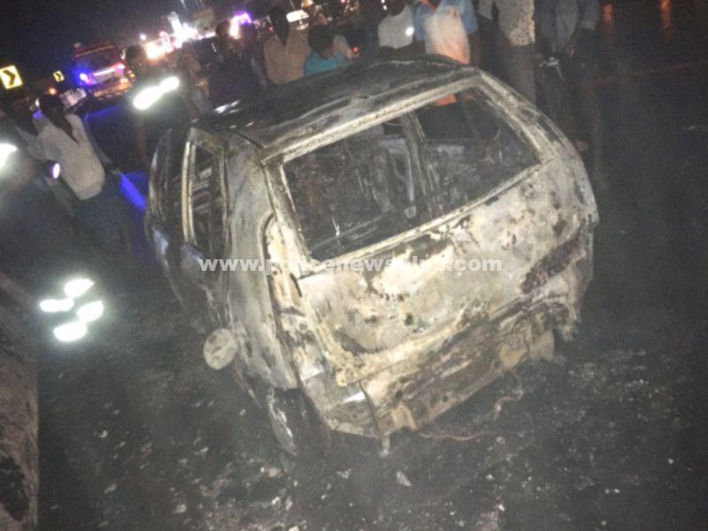 மதுரை : மதுரை மாவட்டம், திருமங்கலம் அருகே கப்பலூர் மேம்பாலத்தில் மதுரை பழங்காநத்தம் பகுதியில் இருந்து சின்ன ராஜா என்பவருக்கு சொந்தமான காரை, அவரது மைத்துனர் மணிமாறன் என்பவர் குடும்பத்தினருடன் சிவகாசி நோக்கி பயணித்துக் கொண்டிருந்தபோது, கப்பலூர் மேம்பாலத்தில் காரின் முன்புறம் திடீரென கரும்புகை கிளம்பியதால், காரில் இருந்த கைக் குழந்தையுடன் இரண்டு பெண்கள் மற்றும் காரை ஓட்டி வந்த மணிமாறன் ஆகியோர் காரில் இருந்து வெளியேறினர். இதனை தொடர்ந்து, பற்றி எரிந்த தீ பரவியதால், அங்கு சிறிது பதட்டம் நிலவியது. இதனைத் தொடர்ந்து, தகவல் அறிந்த நிலைய அலுவலர் ஜெயராணி தலைமையிலான திருமங்கலம் தீயணைப்பு துறையினர் தீயை அணைக்கும் பணியில் 30 நிமிடமாக போராடி அணைத்தனர். இருப்பினும் , கார் முற்றிலும் இருந்து எலும்பு கூடாக காட்சி அளித்தது. இது குறித்து, திருமங்கலம் போலீசார் விசாரணை மேற்கொண்டு வருகின்றனர்.