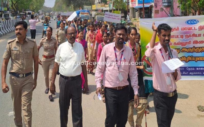 விருதுநகர் : விருதுநகர் மாவட்ட நிர்வாகம் மற்றும் காரியாபட்டி நாசியா கலை மற்றும் அறிவியல் கல்லூரி சார்பாக மதுவிலக்கு விழிப்புணர்வு பேரணி நடைபெற்றது. கல்லூரித்