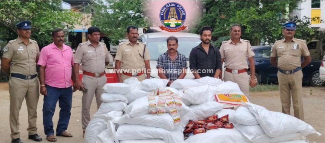 தர்மபுரி : பாலக்கோடு உட்கோட்ட காவல் துணை கண்காணிப்பாளர் திரு மனோகரன் அவர்களின் நேரடி மேற்பார்வையில் காரிமங்கலம் காவல் நிலைய ஆய்வாளர் திரு பார்த்தீபன் உதவி ஆய்வாளர் சுந்தரமூர்த்தி மற்றும் போலீசார் கும்பார அள்ளி சோதனை சாவடியில் தீவிர கண்காணிப்பில் ஈடுப்பட்டனர். அப்போது அந்த வழியாக வந்த 2 சொகுசு காரை நிறுத்தி சோதனை செய்தனர். அதில் 5 லட்சம் மதிப்புள்ள 1 டன் குட்கா இருந்தது தெரியவந்தது. காரை ஓட்டி வந்த 2 பேரையும் பிடித்து போலிசார் விசாரணை நடத்தினர். விசாரணையில் அவர்கள் கேரளா மாநிலத்தை சேர்ந்த ஜீதிஷ்(45). மற்றும் சுருபின் (29). என்பதும் இவர்கள் கர்நாடகாவில் இருந்து கேரளாவிற்கு குட்கா கடத்தி சென்றதும் தெரிய வந்தது. இதனை தொடர்ந்து 2 கார்கள் மற்றும் குட்காவை பறிமுதல் செய்தனர். இது தொடர்பாக வழக்கு பதிவு செய்து இருவரையும் நீதிமன்றத்தில் ஆஜர்படுத்தி சிறையில் அடைத்தனர்.