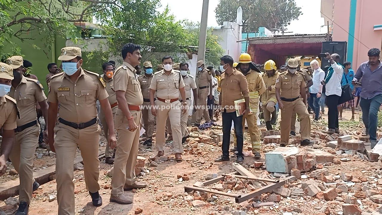 மதுரை மாவட்டம் முழுவதும் ஆய்வு செய்து சட்டவிரோதமாக விற்பனை மற்றும் தயாரிக்கப்பட்டால் கடும் நடவடிக்கை எடுக்கப்படும் என உசிலம்பட்டி அருகே வீட்டில் பதுக்கி வைக்கப்பட்டிருந்த பட்டாசு வெடித்த விபத்தை நேரில் ஆய்வு செய்த பின் – மதுரை மாவட்ட எஸ்.பி. பாஸ்கரன் பேட்டி