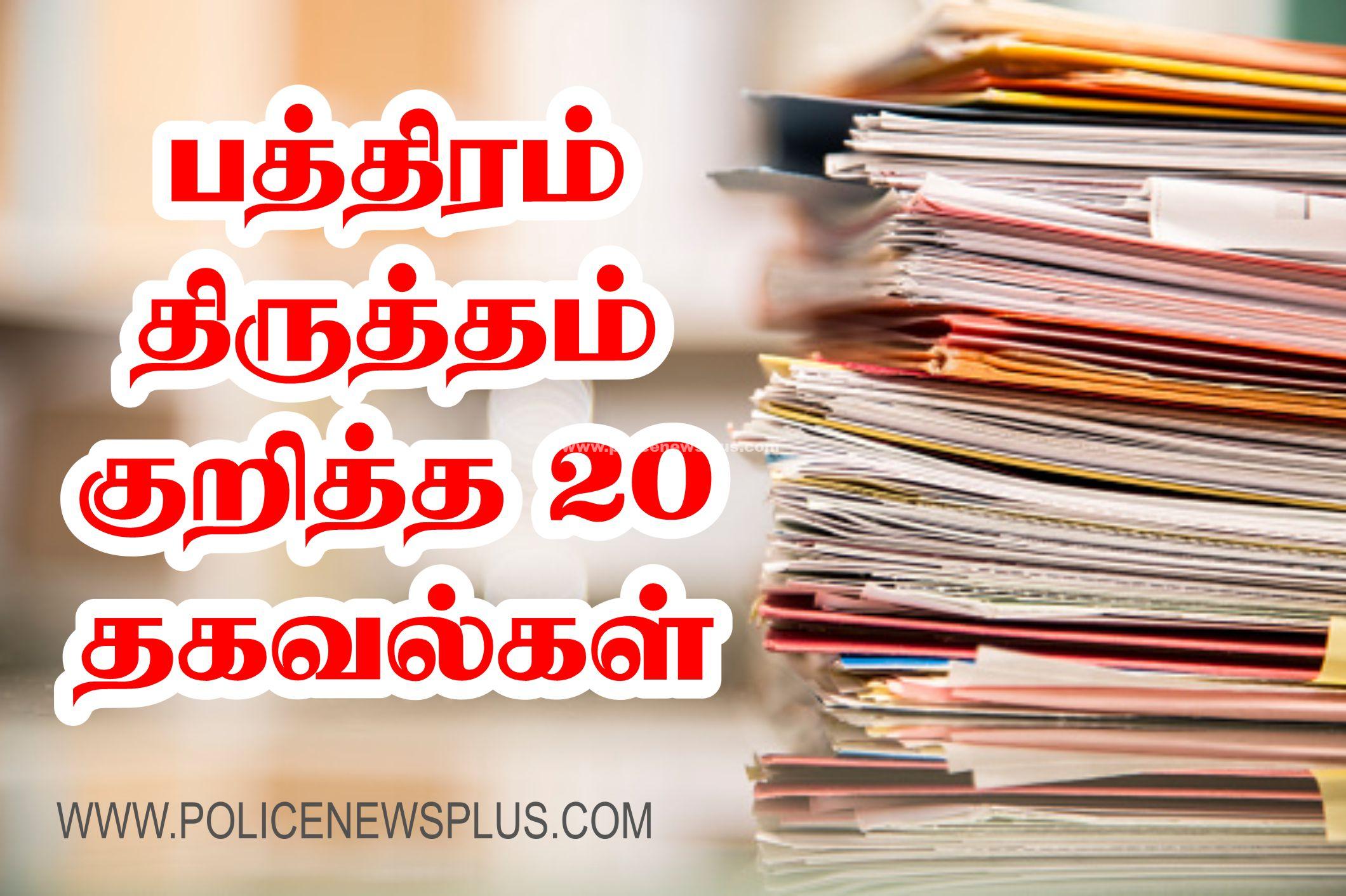 19. ஆவணங்களில் எழுதப்பட்ட ஷரத்துக்களில் சில வார்த்தைகள் அடிக்கப்பட்டு மாற்றப்பட்டு இருப்பின் அடித்தல் திருத்தல் வரி பிளவுக்கு நேராகவோ , குறுக்காகவோ இரண்டு நபர்களும் சான்று கையொப்பம் இட வேண்டும்.