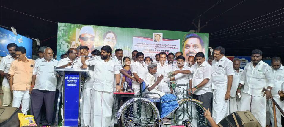 திருவள்ளூர் : திருவள்ளூர் வடக்கு மாவட்டம் சோழவரம் ஒன்றியம் அருமந்தை கூட்டுச்சாலையில் அதிமுக சார்பில் முன்னாள் முதலமைச்சர் டாக்டர் எம்ஜிஆர் அவர்களின் 107-வது பிறந்த நாளை முன்னிட்டு அருமந்தை கூட்டுச்சாலையில் நலத்திட்ட உதவிகள் மற்றும் மாபெரும் பொதுக்கூட்டம் திருவள்ளூர் வடக்கு மாவட்ட கழக செயலாளர் முன்னாள் பொன்னேரி தொகுதியின் சட்டமன்ற உறுப்பினர் சிறுணியம் பி. பலராமன் தலைமையில் நடைபெற்றது. இதில் சிறப்பு அழைப்பாளராக அ.தி.மு.க கழக மாணவரணி செயலாளர் எஸ்.ஆர். விஜயகுமார் கலந்துகொண்டு சிறப்புரை ஆற்றினார். அப்பொழுது வருகின்ற நாடாளுமன்ற தேர்தலில் யாரை வேட்பாளராக நிற்க வைத்தாலும் வெற்றி பெற பாடுபட வேண்டும் என அவர் கேட்டுக் கொண்டார். அதைத்தொடர்ந்து மாற்றுத்திறனாளிக்கு நலத்திட்ட உதவிகள் வழங்கினார். இந்த பொதுக்கூட்டத்தில் ஒன்றிய செயலாளர் சோழவரம் பிரகாஷ், நாலூர் முத்துக்குமார், பொன்னேரி நகர செயலாளர் செல்வகுமார், மீஞ்சூர் பேரூர் கழக செயலாளர் பட்டாபிராமன், மாவட்ட எம்.ஜி.ஆர் இணை அணி செயலாளர் பி.டி.பானு பிரசாத், மாவட்ட கழக இன செயலாளர் பழவேற்காடு சுமித்ரா குமார், மாவட்ட மாணவரணி செயலாளர் எஸ்.ராஜேஷ், மற்றும் மாவட்ட நிர்வாகிகள் ஒன்றிய கழக நிர்வாகிகள் ஊராட்சி கழக நிர்வாகிகள் கிளைக் கழக செயலாளர்கள் நகர கழக நிர்வாகிகள் பேரூர் கழக நிர்வாகிகள் அதிமுக மூத்த முன்னோடிகள் இளைஞர்கள் மகளிர் அணிகள் இதில் கலந்து கொண்டனர். நிகழ்ச்சி முடிவில் சோழவரம் மேற்கு ஒன்றிய எம் ஜி ஆர் இளைஞர் அணி செயலாளர் விச்சூர் வெஸ்லி அனைவருக்கும் நன்றி தெரிவித்தார்.