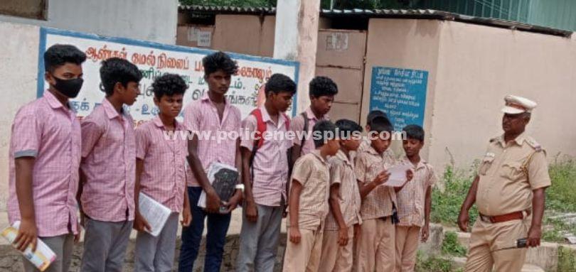 இராணிப்பேட்டை : இராணிப்பேட்டை மாவட்ட காவல் கண்காணிப்பாளர் மருத்துவர்.தீபாசத்யன் இ.கா.ப, அவர்களின் உத்தரவின்படி, (21/09/2022), தக்கோலம் காவல் நிலைய எல்லைக்குட்பட்ட தக்கோலம் அரசு மேல்நிலைப்பள்ளி, மாணவ மாணவிகளுக்கு பேருந்து படிக்கட்டுகளில், அபாயகரமாக பயணம் செய்வதை தவிர்ப்பது குறித்தும், போதைப்பொருள் ஒழிப்பு குறித்தும் விழிப்புணர்வு நிகழ்ச்சி நடத்தப்பட்டது.
