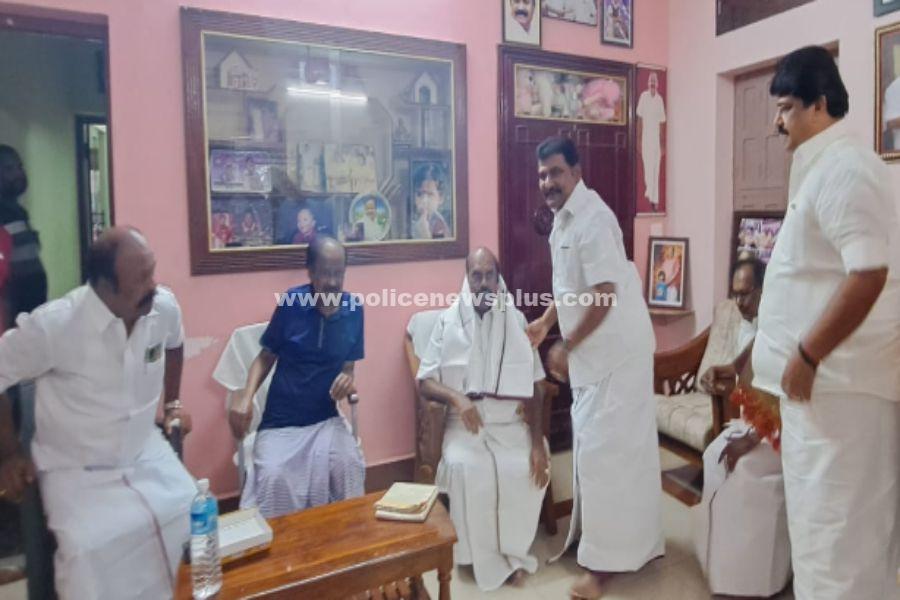 சிவகங்கை : சிவகங்கை மாவட்டம், காரைக்குடியில் முன்னாள் அமைச்சர் மு.தென்னவன் அவர்களது இல்லத்தில் நெடுஞ்சாலை துறை அமைச்சர் ஏ.வா வேலு, சட்டத்துறை அமைச்சர் ரகுபதி, கூட்டுறவு துறை அமைச்சர் அண்ணன் கே.ஆர் பெரிய கருப்பன் ,சந்தித்து நலம் விசாரித்தார்கள். அவர்களுக்கு காரைக்குடி நகர் மன்ற தலைவர் சே.முத்துதுரை சால்வை அணிவித்து வரவேற்றார்.