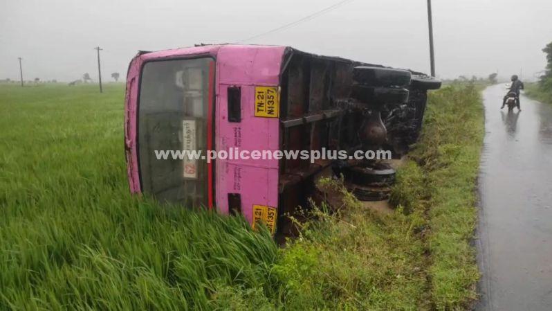 காலை நேரத்தில் பேருந்து சென்று நேரத்தில் சொற்ப அளவிலான பயணிகள் மட்டுமே பேருந்தில் இருந்ததால் லேசான காயம் மட்டும் ஏற்பட்டது. தொடர்ந்து சம்பவ இடத்திற்கு சென்று காவல்துறையினர் விசாரணை நடத்தி வருகின்றனர். மழையின் காரணமாக சாலையின் அருகே இருக்கும் மண் ஈரப்பதத்துடன் காணப்படுவதால் பேருந்தை சாலையின் ஓரத்திற்கு கொண்டு சென்ற போது மண் சரிந்து வயலில் கவிழ்ந்து விபத்து ஏற்பட்டுள்ளதாக காவல்துறை தரப்பில் தெரிவிக்கப்பட்டுள்ளது. காலை நேரத்தில் பேருந்து கவிழ்ந்து விபத்து ஏற்பட்ட சம்பவம் பரபரப்பை ஏற்படுத்தி உள்ளது.