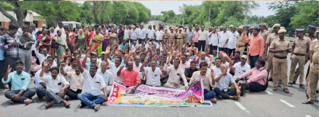 செங்கல்பட்டு : தமிழ்நாடு தொடக்க கல்வி ஆசிரியர் இயக்கங்களில் கூட்டு நடவடிக்கை குழு (டிட்டோஜாக்) செங்கல்பட்டு மாவட்டம் சார்பில் ஊராட்சி ஒன்றிய நடுநிலைப்பள்ளி வெம்பாக்கம் (பொது மாறுதல் கலந்தாய்வு நடைபெறும் மையம் முன்பு) மறியல் போராட்டம் நடைபெற்றது. இந்நிகழ்விற்கு மு.சீனுவாசன் தலைமை ஏற்றார். மறியலை ஜி. மத்தேயு மேனாள் மாநில பொருளாளர் துவங்கி வைத்தார். 200க்கும் மேற்பட்ட ஆசிரியர்கள் மறியல் போராட்டத்தில் கலந்து கொண்டனர் கோரிக்கைகள் அரசாணை எண் 243 ரத்து செய்யக் கோரியும் உச்ச நீதிமன்றத்தில் ஆசிரியர் தகுதி தேர்வு வழக்கு நிலுவையில் உள்ளதால் நீதிமன்ற இறுதி முடிவு தெரிந்து கொண்டு ஆசிரியர்களுக்கு பதவி உயர்வு வழங்கிய பின் கலந்தாய்வு நடத்த வேண்டும் என்று கூறியும் தேர்தல் கால வாக்குறுதிகளை உடனடியாக நிறைவேற்ற கோரியும் மறியல் போராட்டம் நடைபெற்றது. இதில் மாவட்ட உயர்மட்ட குழு உறுப்பினர் ஜோசப்,தா.ச.ரமேஷ்,கோ.க.முருகன், லூக் சாமுவேல்,மணிமோகன், சுரேஷ் மறியலில் வாழ்த்துரை வழங்கினர். மற்றும் இவர்களை கைது செய்து தனியார் திருமண மண்டபத்தில் அடைக்கப்பட்டனர்.
