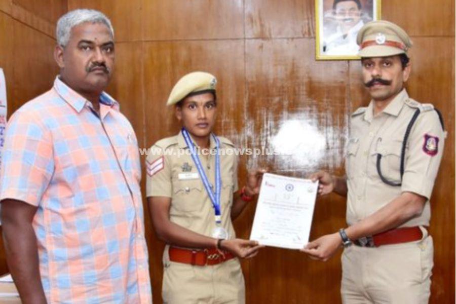 கடலூர் : தேசிய மூத்தோர்; தடகள ஓட்டப்பந்தயம் 2023, மேற்கு வங்காளம் கல்கத்தா நகரில் உள்ள சாய் விளையாட்டு மைதானத்தில் (14.2.2023) முதல் (18.2.2023) வரை நடைபெற்றது. கடலூர் ஆயுதப்படை முதல் நிலை பெண்காவலர் திருமதி.A. சத்யா அவர்கள் தமிழக தடகள அணி சார்பில் 4*100 தொடர் ஓட்டப்பந்தயத்தில் பங்கேற்று இரண்டாம் பரிசை பெற்றார். கடலூர் மாவட்ட காவல் கண்காணிப்பாளர் திரு. இரா. இராஜாராம் அவர்கள் தேசிய மூத்தோர் தடகள போட்டியில் இரண்டாம் பரிசு பெற்ற ஆயுதப்படை முதல்நிலை பெண் காவலர் திருமதி. A. சத்யா அவர்களை பாராட்டி வாழ்த்து தெரிவித்தார்.