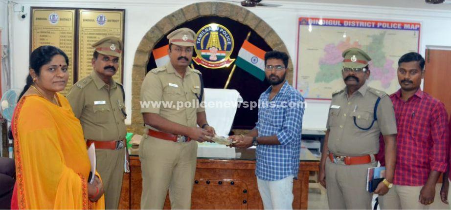 திண்டுக்கல் : திண்டுக்கல் மாவட்டம், அய்யம்பாளையத்தைச் சேர்ந்த விக்னேஷ்பாண்டி (31), என்பவரிடம் SBI வங்கியிலிருந்து அனுப்புவது போல் மர்ம நபர் KYC Update செய்ய சொல்லி அனுப்பிய Link -ன் வழியாக தகவல்களை பெற்று ரூ.1,00,000/- பணத்தை நூதன முறையில் ஏமாற்றியதாக விக்னேஷ்பாண்டி என்பவர் திண்டுக்கல் மாவட்ட சைபர் கிரைம் காவல் நிலையத்தில் புகார் கொடுத்ததின் அடிப்படையில், திண்டுக்கல் மாவட்ட காவல் கண்காணிப்பாளர் திரு.V.பாஸ்கரன், அவர்கள் உத்தரவுப்படி திண்டுக்கல் சைபர் கிரைம் காவல்துறையினர் துரிதமாக நடவடிக்கை எடுத்து மர்ம நபரின் வங்கி கணக்கை முடக்கம் செய்து ரூ.1,00,000/- பணத்தை மீட்டனர் இதையடுத்து (16.09.2022), திண்டுக்கல் மாவட்ட காவல் கண்காணிப்பாளர் திரு.V.பாஸ்கரன் அவர்கள் திரு.விக்னேஷ்பாண்டி அவர்களிடம் ரூ.1,00,000/- பணத்தை ஒப்படைத்தார்கள்.