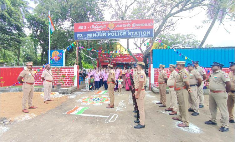திருவள்ளூர்: திருவள்ளூர் மாவட்டம் இந்திய திருநாட்டின் 79வது சுதந்திர தினத்தை முன்னிட்டு ஆவடி காவல் ஆணையரக எல்லைக்குட்பட்ட மீஞ்சூர் காவல் நிலையத்தில் சட்டம் ஒழுங்கு ஆய்வாளர் வேலுமணி மூவர்ண தேசிய கொடி ஏற்றி வைத்து காவலர்கள், பொதுமக்கள் அனைவருக்கும் இனிப்பு வழங்கினார். இதில் அனைத்து காவலர்களும் கலந்து கொண்டு தேசிய கொடிக்கு மரியாதை செலுத்தினர்.