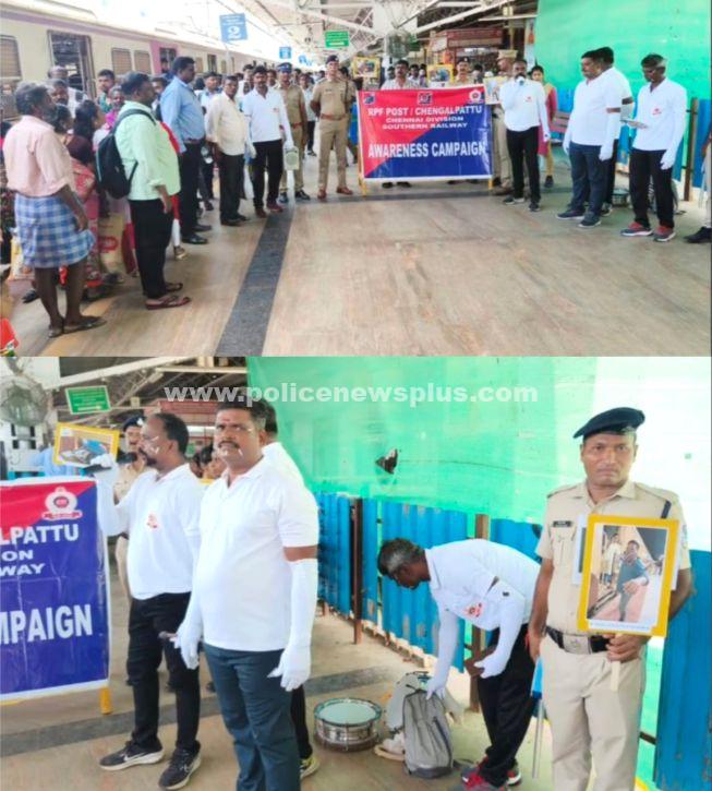 செங்கல்பட்டு: செங்கல்பட்டு மாவட்டம் செங்கல்பட்டு இரயில்வே பாதுகாப்பு குழு சார்பாக ஐ.ஜி. அருள்ஜோதி சென்னை கோட்ட இரயில்வே பாதுகாப்பு முதுநிலை கோட்ட ஆணையர் ராமகிருஷ்ணன் அவர்களின் உத்தரவின் பேரில் செங்கல்பட்டு இரயில்வே காவல் ஆய்வாளர் உன்னிகிருஷ்ணன் அவர்கள் தலைமையில் இரயிலில் பயணம் செய்யும் பயணிகளுக்கு ஏற்படும் விபத்துக்கள் குறித்து இரயில்வே பாதுகாப்பு சங்கத்தினர்களை வைத்து விழிப்புணர்வு நிகழ்ச்சிகளை செங்கல்பட்டு இரயில் நிலையம் நடைமேடையில் வைத்து விழிப்புணர்வு நடைபெற்றது. இதில் இரயிலில் பெண்பயணிகள் தங்க நகை அணிந்து ஜன்னல் ஓரமாக அமர்ந்து பயணம் செய்வதை தவிர்க்க வேண்டும் அப்படி பயணம் செய்யும்போது எவ்வாறு நகைகளை திருடி செல்வார்கள் என்பதனை நடித்துக் காட்டினர்.