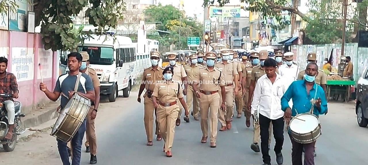 இராணிப்பேட்டை : நகர்ப்புற உள்ளாட்சி தேர்தலை முன்னிட்டு வேலூர் மாவட்டத்தில் காவல் துறையின் சார்பாக கொடி அணிவகுப்பு நிகழ்ச்சி இன்று காலை நடைபெற்றது. இந்நிகழ்ச்சியை இராணிப்பேட்டை காவல் கண்காணிப்பாளர் திருமதி.தீபா சத்யன், அவர்கள் கொடியசைத்து துவக்கி வைத்தார். இந்ந அணி வகுப்பில், அரக்கோணம் காவல் துணை கண்காணிப்பாளர் திரு.புகழேந்தி, அரக்கோணம் நகர காவல் ஆய்வாளர், தாலுகா காவல் ஆய்வாளர் மற்றும் போக்குவரத்து காவல் ஆய்வாளர்கள் கலந்து கொண்டு கொடி அணிவகுப்பினை சிறப்பாக நிகழ்த்தி பொதுமக்கள் அச்சமின்றி வாக்களிக்க அழைப்பு விடுத்தனர். இதனை அநேக பொதுமக்கள் கண்டு களித்தனர்.