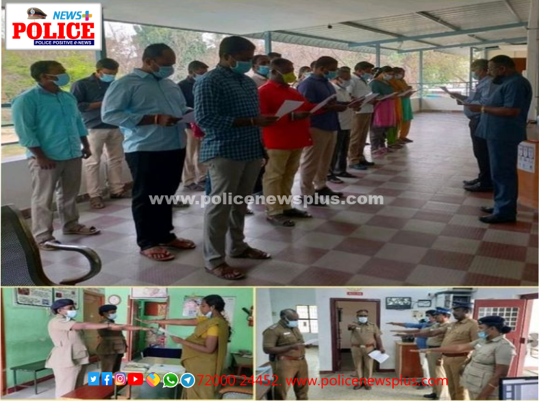 இராணிப்பேட்டை: இராணிப்பேட்டை மாவட்ட காவல் அலுவலகத்தில் காவலர்கள் மற்றும் அமைச்சுப் பணியாளர்கள் மேலும் மாவட்டத்தில் உள்ள அனைத்து காவல் நிலையங்களிலும் தீண்டாமை ஒழிப்பு உறுதிமொழி ஏற்கப்பட்டது.