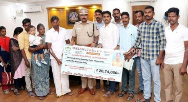 காஞ்சிபுரம்: காஞ்சிபுரம் மாவட்டம் விஷ்ணு காஞ்சி காவல் நிலையத்தில் பணிபுரிந்த காவலர் இளங்கோ என்பவர் கடந்தாண்டு நவம்பர் மாதம் சாலை விபத்தில் இறந்துவிட்டார். இது தொடர்பாக காவலர் இளங்கோ அவர்களின் குடும்பத்திற்கு அவருடன் பணிபுரிந்த 2017 காக்கும் உறவுகள் குழு காவலர்கள் சார்பாக ரூபாய் 20 லட்சத்து 74 ஆயிரத்து 50 ரூபாய் நிதி சேர்த்து காவலர் இளங்கோ அவர்களின் குடும்பத்திற்கு காஞ்சிபுரம் மாவட்ட காவல் கண்காணிப்பாளர் திரு.கி.சண்முகம் அவர்களின் முன்னிலையில் காவலர்கள் கமல்ராஜ், விக்னேஷ், தமிழ் குமரன், மற்றும் செல்வ குமார் சேர்ந்து இளங்கோவின் குடும்பத்தினரிடம் ஒப்படைத்தனர்.