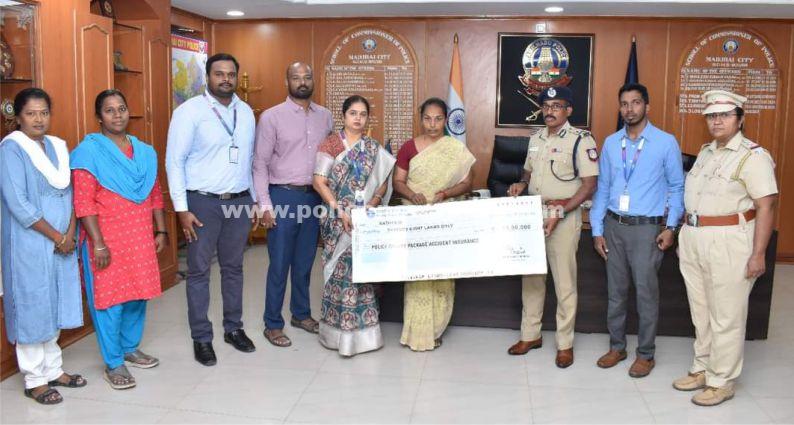வாகன விபத்தில் உயிரிழந்த மதுரை மாநகர் தெற்குவாசல் போக்குவரத்து காவல் சிறப்பு சார்பு ஆய்வாளர் முருகன் குடும்பத்திற்கு எஸ்.பி.ஐ. வங்கி விபத்து காப்பீட்டு தொகை ரூபாய்.78,00,000/- மதுரை காவல் ஆணையர் முனைவர். ஜெ.லோகநாதன், முன்னிலையில் வழங்கப்பட்டது.