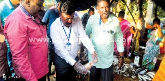 ராமநாதபுரம்: ராமநாதபுரம் மாவட்டம் முதுகுளத்தூரில் உள்ள மீன் கடைகளில் திடீரென ஆய்வு செய்த உணவு கட்டுப்பாட்டு துறை அதிகாரிகள் விற்பனை செய்ய வைத்திருந்த 40 கிலோ பழைய மீன்கள் மற்றும் தடை செய்யப்பட்ட தேளி மீன்களை பறிமுதல் செய்தனர்.
