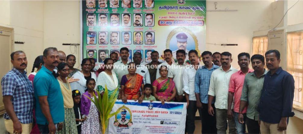 சிவகங்கை: தமிழ்நாடு காவல் துறை 2009 ஆம் ஆண்டு பேட்ச் உதவும் அன்பு உள்ளங்கள் வழங்கும் 30 வது நிதி அளிப்பு நிகழ்வு சிவகங்கை தனியார் மண்டபத்தில் நடைபெற்றது. சிவகங்கை மாவட்டத்தில் பணிபுரிந்து (08.06.2024) அன்று மறைந்த முத்துகிருஷ்ணன் அவரது குடும்பத்திற்கு ரூ 24,48,893/ நிதி உதவி வழங்கினர்.