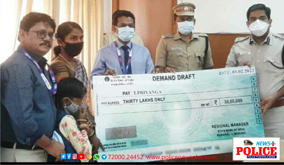 திண்டுக்கல்: விபத்தில் உயிரிழந்த கீரனூர் போலீஸ்காரர் தெய்வராசு குடும்பத்துக்கு ரூ.30 லட்சம் இழப்பீடை திண்டுக்கல் மாவட்ட டி.ஐ.ஜி திரு.ரூபேஷ்குமார் மீனா, போலீஸ் சூப்பிரண்டு திரு.சீனிவாசன் ஆகியோர் வழங்கினர்.