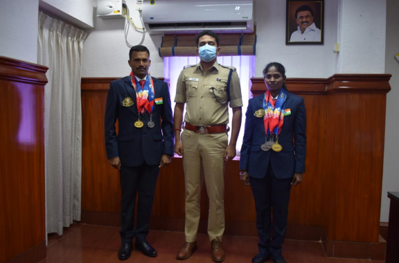 சேலம் மாவட்ட காவல் துறையில், இருந்து மேற்படி இருவரும் மொத்தம் மூன்று தங்கம் நான்கு வெள்ளிப் பதக்கங்களை வென்றனர். உலக அளவில் தமிழக காவல்துறைக்கு பெருமை சேர்த்த காவலர்கள் முன்னதாக சென்னையில், மாண்புமிகு தமிழக முதல்வர் மற்றும் காவல்துறை இயக்குனர் அவர்களை சந்தித்து வாழ்த்து பெற்றனர். மேலும் இன்று (06 /08 /2022) ஆம் தேதி மாவட்ட காவல் அலுவலகத்தில் மாவட்ட காவல் கண்காணிப்பாளர் திரு.மஅபிநவ் இ.கா.ப, அவர்களை நேரில் சந்தித்து வாழ்த்து பெற்றனர்.
