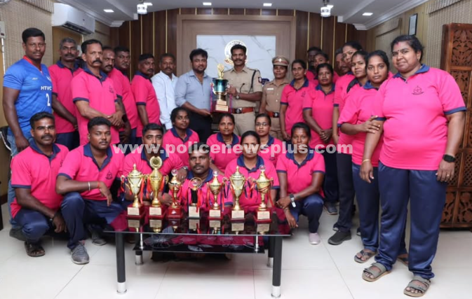 மேலும் சிறந்த விளையாட்டு வீரருக்கான கோப்பையினை ASL 399 திருமதி.பிரபஜா என்பவரும் பெற்றுள்ளார். மேற்கண்ட போட்டிகளில் வெற்றி பெற்று பரிசுகளை வென்ற ஊர்க்காவல் படையினரை மாவட்ட காவல் அலுவலகத்தில் வைத்து மாவட்ட காவல் கண்காணிப்பாளர் டாக்டர்.திரு.இரா.ஸ்டாலின் IPS அவர்கள் வெகுவாக பாராட்டினார்கள்.