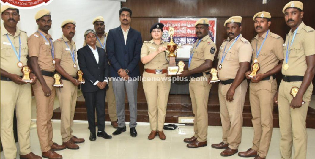 இராணிப்பேட்டை: இராணிப்பேட்டைமாவட்ட காவல் அலுவலகத்தில், கடந்த (22.08.2025) முதல் (24.08.2025) வரை தஞ்சாவூரில் நடைபெற்ற தமிழ்நாடு ஊர்க்காவல் படையினருக்கான மாநில அளவிலான விளையாட்டுப் போட்டியில் வேலூர் சரகத்தின் சார்பாக 8 நபர்கள் கலந்து கொண்டு, மீட்புப் பணி பிரிவில் முதலிடம் பெற்று கோப்பையும் நினைவுப் பரிசுகளையும் பெற்ற இராணிப்பேட்டை மாவட்ட ஊர்க்காவல் படையினருக்கு, இராணிப்பேட்டை மாவட்ட காவல் கண்காணிப்பாளர் திருமதி.அய்மன் ஜமால், இ.கா.ப., அவர்கள் நேரில் அழைத்து பாராட்டி வாழ்த்துகளை தெரிவித்தார்.