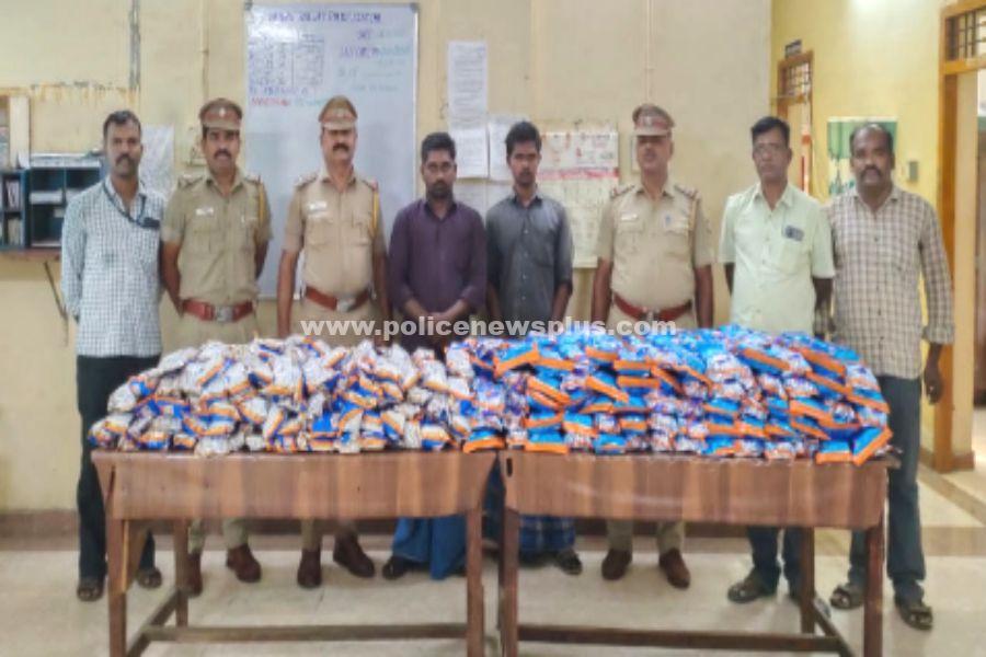 மதுரை : மதுரை வழியாக செல்லும் எக்ஸ்பிரஸ் ரயில்களில் தடை செய்யப்பட்ட புகையிலை பொருட்கள் கடத்தி வரப்படுவதாக, மதுரை ரயில்வே இருப்புப்பாதை போலீசாருக்கு ரகசிய தகவல் வந்தது. இதன் அடிப்படையில், போலீசார் அதிரடி சோதனை நடத்தினர். இந்த நிலையில், மைசூரில் இருந்து தூத்துக்குடிக்கு ஒரு எக்ஸ்பிரஸ் ரயில், இன்று காலை 2-வது பிளாட்பாரத்துக்கு புறப்பட்டு வந்தது. அப்போது ,அங்கு 2 பேர் 7 சாக்குகளுடன் சந்தேகத்துக்கு இடம் அளிக்கும் வகையில் நின்று கொண்டு இருந்தனர். எனவே, அவர்களிடம் விசாரணை நடத்தப்பட்டது. அப்போது, அவர்கள் முன்னுக்குப் பின் முரணாக பதில் அளித்தனர்.