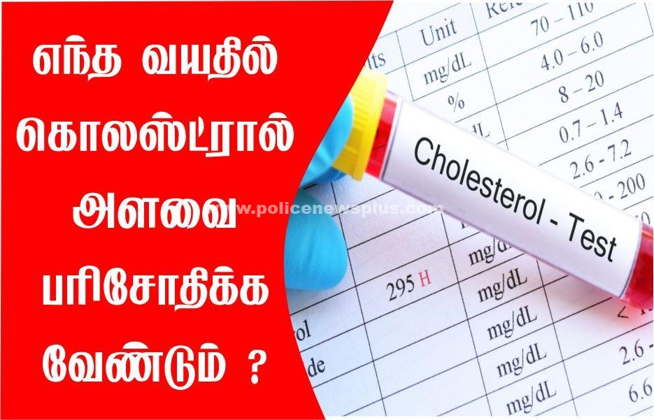 கொலஸ்ட்ரால், பரிசோதனை செய்ய வேண்டிய வயது : அமெரிக்கன் ஹார்ட் அசோசியேஷன் ஒருவர் (20), வயதிலிருந்தை எட்டியதில் இரத்தக் கொழுப்பின் அளவைப் பரிசோதிக்க வேண்டும் என பரிந்துரைக்கிறது. குழந்தைகளைப் பொறுத்தவரை 9 வயதை அடைந்ததும் ரத்தத்தில் உள்ள கொழுப்பின் அளவை பரிசோதிக்க வேண்டும். தற்போது வாழ்க்கை முறையில் ஏற்பட்டுள்ள மாற்றம் காரணமாக குழந்தைகள் மற்றும் இளம் பருவத்தினர் கொலஸ்ட்ராலால் பாதிக்கப்படுவது அதிகரித்து வருகிறது. எனவே குழந்தைகள் வளர்ந்து பதின்ம வயதை அடையும் போது, (17), முதல் (20), வயதிற்குள் ஒருமுறை ரத்தத்தில் உள்ள கொழுப்பின் அளவை பரிசோதித்து பார்க்க வேண்டும்.