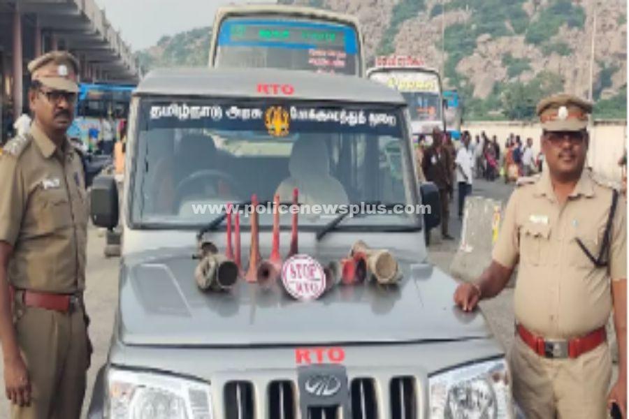 வட்டார போக்குவரத்து அலுவலர் காளியபபன் கூறியதாவது கிருஷ்ணகிரி மாவட்டத்தில் அரசு மற்றும் தனியார் பஸ்களில் அதிக ஒலி எழுப்பும் ஏர்ஹாரன்கள் பொருத்தப்பட்டுள்ளதாகவும், இதனால் ஒலி மாசு ஏற்படுவதாகவும் புகார் வந்தது. அதன்படி மேற்கொள்ளப்பட்ட ஆய்வில் 20 பஸ்களில் பொருத்தப்பட்டிருந்த ஏர்ஹாரன்கள் பறிமுதல் செய்யப்பட்டன. விதிகளை மீறி அதிக ஒலி எழுப்பும் ஏர்ஹாரன்கள் பொருத்தப்பட்டால், கடும் நடவடிக்கை எடுக்கப்படும். மேலும் சட்டப்படி உரிய நடவடிக்கை எடுக்கப்படும் என டிரைவர், கண்டக்டர்களுக்கு எச்சரிக்கை விடுக்கப்பட்டுள்ளது. போக்குவரத்து விதிமுறைகளை தவறாமல் கடைபிடித்து வாகனங்களை இயக்க வேண்டும் என அறிவுறுத்தப்பட்டுள்ளது.