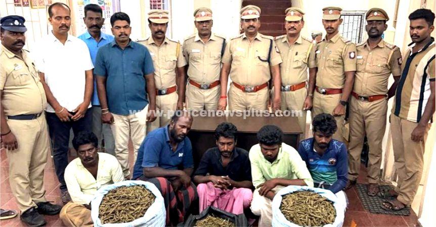 இராமநாதபுரம் : இராமநாதபுரம் மாவட்டம் தனுஷ்கோடி அருகே, இலங்கைக்கு கடத்துவதற்காக கஞ்சாவை பதுக்கி வைத்திருந்த சகாயராஜ், ராமச்சந்திரன், அந்தோணி அடிமை (எ) குலோத்துங்கன், சந்தோஷ்ராஜ், சச்சின் மற்றும் அத்தினாஷ் ஆகிய 6 நபர்களை கைது செய்த காவல்துறையினர், அவர்களிடமிருந்து 50 கிலோ கஞ்சாவை பறிமுதல் செய்தனர்.
