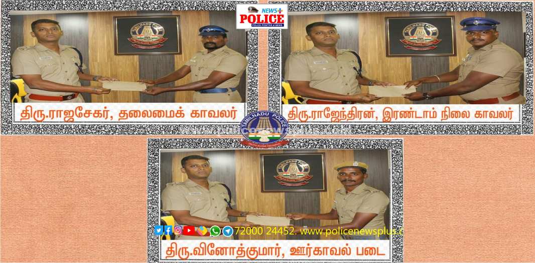 திருவள்ளூர்: திருவள்ளூர் மாவட்டம் கும்மிடிபூண்டி உட்கோட்டம் சிப்காட் காவல் நிலைய எல்லைக்குட்பட்ட பாத்தபாளையம் என்ற இடத்தில் கஞ்சா விற்ற நபரை துரத்திச் சென்று பிடித்த காவலர்களுக்கு திருவள்ளூர் மாவட்ட காவல் கண்காணிப்பாளர் அவர்கள் வெகுமதி வழங்கி பாராட்டினார்.