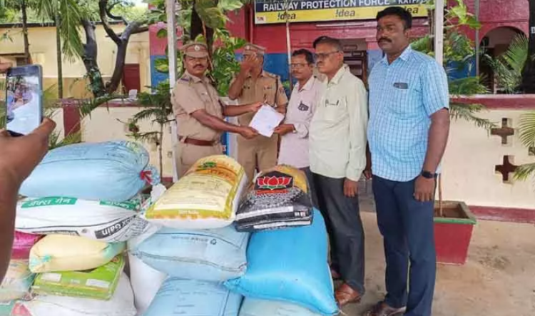 வேலூர் : காட்பாடி ரெயில் நிலையத்தில், அனைத்து ரெயில்களிலும் சோதனை செய்யப்பட்டது. காட்பாடி வட்ட வழங்கல் அலுவலர் ஜெயபிரகாஷ், பறக்கும் படை தனி தாசில்தார் கோட்டீஸ்வரன் மற்றும் ரெயில்வே பாதுகாப்பு படை காவல்துறையினர், இணைந்து நடத்திய இந்த சோதனையில் ரெயிலில் கடத்தப்பட்ட ஒரு டன்ரேஷன் அரிசி பறிமுதல் செய்யப்பட்டது.