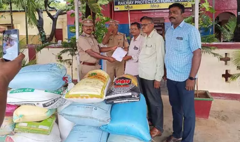 வேலூர் : காட்பாடி ரெயில் நிலையத்தில், அனைத்து ரெயில்களிலும் சோதனை செய்யப்பட்டது. காட்பாடி வட்ட வழங்கல் அலுவலர் ஜெயபிரகாஷ், பறக்கும் படை தனி தாசில்தார் கோட்டீஸ்வரன் மற்றும் ரெயில்வே பாதுகாப்பு படை காவல்துறையினர், இணைந்து நடத்திய இந்த சோதனையில் ரெயிலில் கடத்தப்பட்ட ஒரு டன்ரேஷன் அரிசி பறிமுதல் செய்யப்பட்டது.