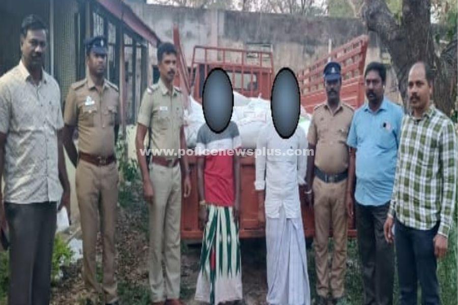 கள்ளக்குறிச்சி : கள்ளக்குறிச்சி மாவட்ட காவல் கண்காணிப்பாளர் திரு.N. மோகன்ராஜ்., அவர்கள் உத்தரவுப்படி கள்ளக்குறிச்சி மாவட்டத்தில் கஞ்சா, கள்ளச்சாராயம் மற்றும் ரேஷன் அரிசி கடத்தல் மற்றும் விற்பனை போன்ற சட்டத்திற்கு புறம்பான குற்ற செயல்களில் ஈடுபடுவோரை கட்டுப்படுத்த தனிப்படை அமைத்து கடும் நடவடிக்கை எடுக்கப்பட்டு வருகிறது. இந்நிலையில் (12.01.2023)-ந் தேதி கள்ளக்குறிச்சி மாவட்ட திருக்கோவிலூர் காவல் நிலைய உதவி ஆய்வாளர் திரு. சிவச்சந்திரன், மற்றும் காவலர்கள்அம்மன்கொல்லைமெடு அருகே சுற்று காவல் பணியில் இருந்த போது சந்தேகத்துக்கு இடமாக வந்த TN 32 Y 6336 பதிவெண் கொண்ட லாரியை நிறுத்தி சோதனை செய்தபோது கரடிச்சித்தூர் கிராமத்தை சேர்ந்த .குமார்(27) ,கோபி(30) என்பவர்கள் கோழிப்பண்ணைக்கு லாரியில் சட்டவிரோதமாக சுமார் 1,600 கிலோ ரேஷன் அரிசியை கடத்திச் சென்ற குற்றவாளிகளை கைது செய்து கடத்திய ரேஷன் அரிசி மற்றும் கடத்த பயன்படுத்திய வாகனத்தை பறிமுதல் செய்து குடிமை பொருள் வழங்கல் குற்ற புலனாய்வு துறையிடம் ஒப்படைக்கப்பட்டது. கள்ளக்குறிச்சி மாவட்டத்தில் சட்டவிரோத ரேஷன் அரிசி கடத்தலில் ஈடுபடுபவர் மீது கடும் நடவடிக்கை எடுக்கப்படும் என கள்ளக்குறிச்சி மாவட்ட காவல் கண்காணிப்பாளர் எச்சரிக்கை விடுத்துள்ளார்.