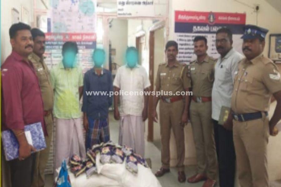 திருவாரூர் : திருவாரூர் மாவட்டம், திருத்துறைப்பூண்டி பகுதியில் போதைப்பொருட்கள் கடத்தப்படுவதாக மாவட்ட காவல் கண்காணிப்பாளர் அவர்களுக்கு கிடைத்த இரகசிய தகவலின் அடிப்படையில் அமைக்கப்பட்ட தனிப்படையினர் திருத்துறைப்பூண்டி ஆஸ்பத்திரி ரோடு அருகில் ரோந்து பணியில் ஈடுபட்ட போது TN 19 U 5541 என்ற Tata Indico காரில் விற்பனைக்காக எடுத்து சென்ற 75 கிலோ Hans பாக்கெட்டுகள் பறிமுதல். (மதிப்பு சுமார் 75,000/- ரூபாய்). மேலும் கடத்தலுக்கு பயன்படுத்திய நான்கு சக்கர வாகனம் பறிமுதல் செய்து போதைப்பொருட்களை கடத்திய 1. முகமது அப்துல் காதர், த/பெ அபுபக்கர் மருத்துவமனை தெரு, திருத்துறைப்பூண்டி 2. செய்யது இப்ராஹிம், த/பெ முகமது அப்துல் காதர், மருத்துவமனை தெரு, திருத்துறைப்பூண்டி 3. சரவணன் த/பெ போஸ், அகமுடையார் தெரு, திருத்துறைப்பூண்டி ஆகிய மூவரும் கைது செய்து செய்யப்பட்டனர். சிறப்பாக செயல்பட்ட தனிப்படையினரை மாவட்ட காவல் கண்காணிப்பாளர் திரு.T.P.சுரேஷ் குமார்அவர்கள் பாராட்டினார்கள்.