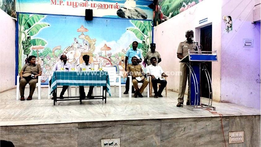 இதில், பேசிய உசிலம்பட்டி டி.எஸ்.பி. சந்திரசேகரன், உசிலம்பட்டி பகுதியில் பட்டாசு வெடிக்க தடை இருந்தும் கட்டுப்படுத்த முடியவில்லை எனவும், வேறு எந்த ஊரிலும் இது போன்று இடையூறு செய்வதில்லை பாதிக்கப்படுவது உங்கள் உறவினர்கள் தான் எனவும், போக்குவரத்துக்கு பாதிப்பை ஏற்படுத்தி பட்டாசு வெடித்தாலோ, அனுமதியின்றி ப்ளக்ஸ் பேனர் வைத்தாலோ, பொது இடங்களில் ஒலிபெருக்கி அமைத்தாலோ கடும் நடவடிக்கைகள் எடுக்கப்படும், மண்டப உரிமையாளர்கள் இல்ல விழாவிற்காக பதிவு செய்ய வரும் போதே பட்டாசு வெடிக்க , ப்ளக்ஸ் பேனர் வைக்க அனுமதி இல்லை என்ற விதிமுறைகளை தெரிவிக்க வேண்டும் எனவும், மீறுவோர் மீது எந்த பாரபட்சமும் காட்டாமல் காவல்துறை வழக்கு பதிவு செய்து கடும் நடவடிக்கை எடுக்கும் என எச்சரிக்கை விடுத்து பேசினார்.